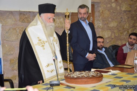 Τήν Ἁγιοβασιλόπιττα εὐλόγησε ὁ Σεβασμιώτατος Μητροπολίτης Κυθήρων καί Ἀντικυθήρων κ. Σεραφείμ. Ὁ Σεβασμιώτατος, ἀφοῦ ἐξέφρασε τήν χαρά του γιά τήν σύναξι αὐτή τῆς Ἑνώσεως τῶν Ἁπανταχοῦ Ἀντικυθηρίων γιά τήν κοπή τῆς παραδοσιακῆς Ἁγιοβασιλόπιττας, πού εἶναι εὐκαιρία ἑνότητος καί ὁμοψυχίας ὅλων τῶν Ἀντικυθηρίων καί ἀφοῦ συνεχάρη γιά τίς πρωτοβουλίες Ἀνάπτυξης τῶν Ἀντικυθηρίων, ἐτόνισε ἰδιαίτερα τό λίαν σημαντικό γεγονός τῆς μετά 23 ἔτη ἐπαναλειτουργίας τοῦ Δημοτικοῦ Σχολείου καί τόν ἐπικείμενο ἤπιο ἐποικισμό τοῦ νησιοῦ μέ πέντε πολύτεκνες οἰκογένειες ἡ μία τοῦ κ.Διονυσίου Ἀνδρονίκου, τόν ὁποῖο, ἐγκάρδια ἐπήνεσε γιά τήν μεγάλη του ἀπόφασι, μέ τήν σύζυγό του Δέσποινα καί 4 ἄλλες οἰκογένειες ἀπό τόν Σύλλογο Πολυτέκνων «Θεόφιλος», πού ἀναμένονται. Ἐκάλεσε ὅλες τίς Τοπικές Ἀρχές (Περιφέρεια Ἀττικῆς, Δῆμο Κυθήρων - Ἀντικυθήρων, Δημοτική Κοινότητα Ἀντικυθήρων, Ἕνωση Ἀντικυθηρίων κ.ἄ.) σέ ἀγαστή συνεργασία γιά τήν ἐπίτευξι τοῦ μεγάλου αὐτοῦ σκοποῦ καί εὐχαρίστησε ἰδιαίτερα τόν Ἐλλογ. Πανεπιστημιακό Καθηγητή –τ.Βουλευτή κ.Κατσανέβα, στόν ὁποῖο πολλά ὀφείλουν στά Ἀντικύθηρα γιά τήν ἐνεργό παρουσία του.