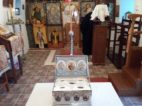 Τό Σάββατο 25 Φεβρουαρίου 2017 τέλεσε τή Θεία Λειτουργία στόν περικαλλῆ Ἱερό Ναό Ἁγίου Γεωργίου στά Κατσανεβιανά, ὅπου ἐκόμισε περίτεχνη ἀργυρή λειψανοθήκη περιέχουσα ἀποτμήματα Ἱερῶν Λειψάνων τῶν Ἁγίων Γεωργίου τοῦ Τροπαιοφόρου, Παντελεήμωνος τοῦ Ἰαματικοῦ, Στεφάνου τοῦ Πρωτομάρτυρος καί Ἀρχιδιακόνου, Χαραλάμπους τοῦ Ἱερομάρτυρος καί Θαυματουργοῦ καί Σεραφείμ, καί τήν ὁποία ἐδώρησε στήν ἐνορία τῶν Ἀντικυθήρων πρός πνευματική ἐνίσχυση τοῦ ποιμνίου του. Τό ἑσπέρας τοῦ Σαββάτου ἐτέλεσε τόν Ἑσπερινό στόν Ἱερό Ναό Ἁγ. Χαραλάμπους Ποταμοῦ, ἐνῶ τήν Κυριακή τῆς Τυρινῆς 26 Φεβρουαρίου 2017 ἐτέλεσε κατά μόνας τήν Ἀκολουθία τοῦ Μεσονυκτικοῦ, τοῦ Ὄρθρου καί τήν Θεία Λειτουργία στόν Ἱερό Ναό τοῦ Πολιούχου τῆς νήσου Ἁγ. Μύρωνος, ὅπου ἐτέλεσε καί Ἱερό Μνημόσυνο γιά ὅλους τούς Ἱερεῖς πού κατά καιρούς ἱεράτευσαν στό νησί, τίς Μοναχές πού τό πάλαι ἐμόνασαν στήν Ἱερά Μονή τοῦ Ἁγ. Μύρωνος καί τούς ἁπανταχοῦ Γῆς ἀναπαυομένους Ἀντικυθηρίους.