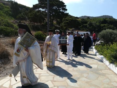Κατανυκτικά ἑορτάστηκε στά Αντικύθηρα ὁ Πολιοῦχος τοῦ νησιοῦ Ἅγιος Μύρων ὁ Ἱερομάρτυς καί Θαυματουργός, στό παλαιό του μοναστήρι πού βρίσκεται στό νησί. Τῶν Ἱερῶν Ἀκολουθιῶν προεξῆρχε ὁ Σεβασμιώτατος Μητροπολίτης Κυθήρων καί Ἀντικυθήρων κ. Σεραφείμ συμπαραστατούμενος ἀπό Ἱερεῖς τῶν Κυθήρων καί τόν Ἱερέα τῶν Ἀντικυθήρων π. Ἀντώνιο. Μελωδικά ἔψαλε (γιά 20ῆ συνεχῆ χρονιά) χορός ψαλτῶν ἀπό τήν Ἀθήνα ὑπό τή διεύθυνση τοῦ Πρωτοψάλτου κ. Ἰωάννου Τσούνη, ἐνῶ τιμές ἀπέδωσε ἄγημα τοῦ Λιμενικοῦ Σώματος ὑπό τόν Λιμενάρχη Νεαπόλεως Βοιῶν Πλωτάρχη ΛΣ κ. Μοτσάκο. Τόν ἑορτασμό τίμησαν ἐπίσης μέ τήν παρουσία τους οἱ Βουλευτές τῆς Ν.Δ. στήν Α’ Πειραιᾶ καί Νήσων κ. Χριστόφορος Μπουτσικάκης καί κ. Νῖκος Μανωλάκος καί ὁ Δήμαρχος Κυθήρων καί Ἀντικυθήρων κ. Εὐστράτιος Χαρχαλάκης μέ μέλη τοῦ Δ.Σ.